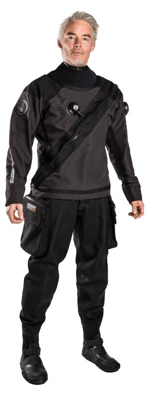 A szárazruha felső része a saját fejlesztésű, speciálisan tervezett rendkívül könnyű és flexibilis, ugyanakkor fantasztikusan kopásálló STEALTH, míg az alsó része a már jól bevált FLEX fantázia nevű rendkívül flexibilis Trilaminált anyagból készült.