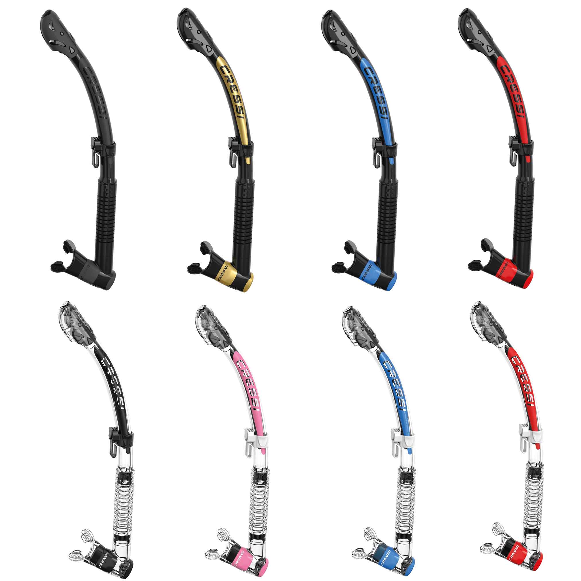 A légzőcső felső felén egy új, kiváló (Cressi által szabadalmaztatott) mechanikus záró szerkezet találéható, ami minimálisra csökkenti a behatoló víz mennyiségét.